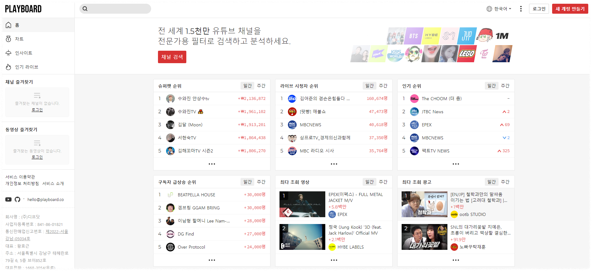 유튜브 순위:플레이보드